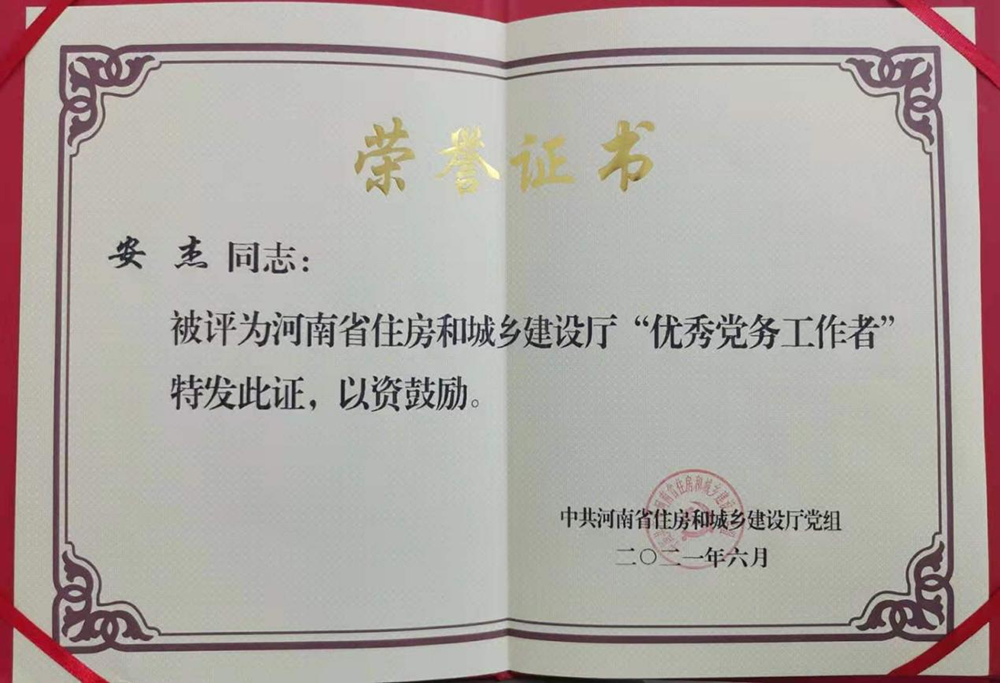 安杰同志榮獲廳直優(yōu)秀黨務(wù)工作者