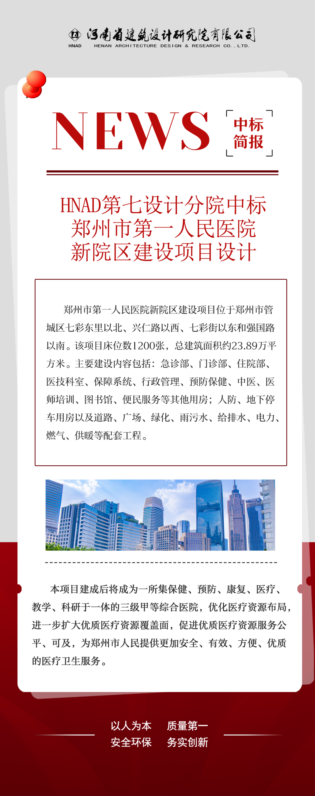 HNAD 簡(jiǎn)訊 | 第七設(shè)計(jì)分院中標(biāo)鄭州市第一人民醫(yī)院新院區(qū)建設(shè)項(xiàng)目設(shè)計(jì)