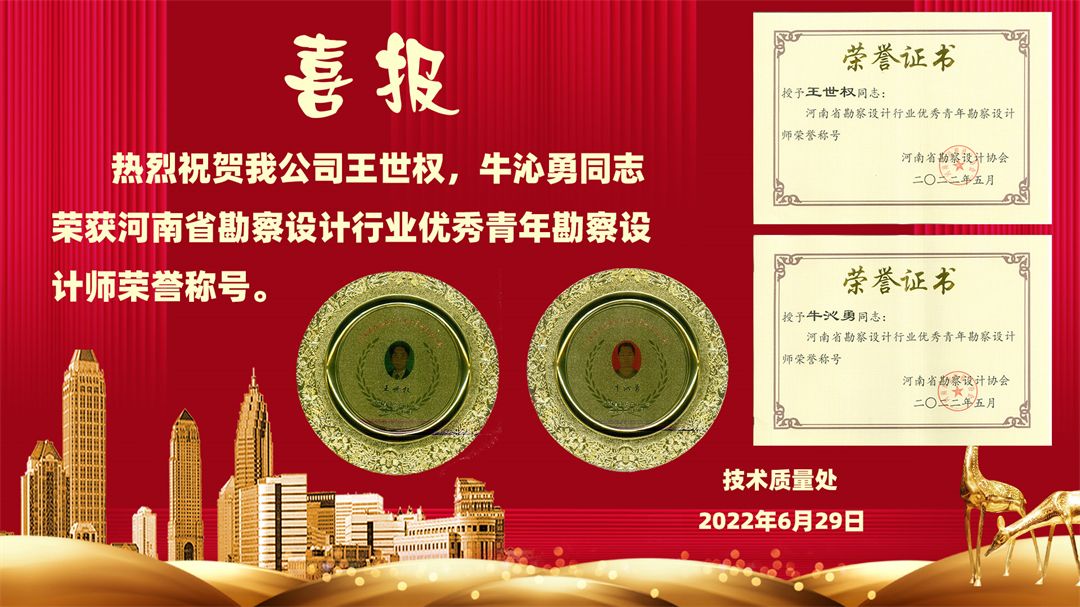 HNAD喜報(bào) | 公司兩位同志榮獲河南省勘察設(shè)計(jì)行業(yè)優(yōu)秀青年勘察設(shè)計(jì)師稱號(hào)