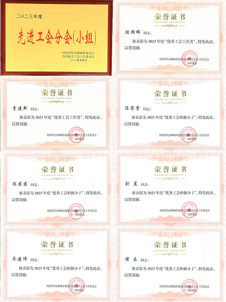 根據(jù)中共河南省住房和城鄉(xiāng)建設(shè)廳機(jī)關(guān)黨委印發(fā)《關(guān)于表彰2023年度優(yōu)秀共產(chǎn)黨員、優(yōu)秀黨務(wù)工作者和先進(jìn)基層黨組織的通報(bào)》(豫建機(jī)黨〔2024〕16號(hào)),河南省住房和城鄉(xiāng)建設(shè)廳直屬機(jī)關(guān)工會(huì)印發(fā)《關(guān)于表彰2023年度廳直工會(huì)工作先進(jìn)集體和先進(jìn)個(gè)人的通報(bào)》(豫建工直〔2024〕1號(hào)),我公司黨委及員工獲得表彰。