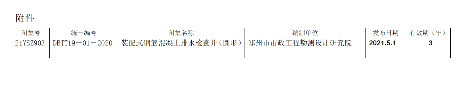 關(guān)于發(fā)布河南省工程建設(shè)標(biāo)準(zhǔn)設(shè)計(jì)《裝配式鋼筋混凝土排水檢查井(圓形)》圖集的公告
