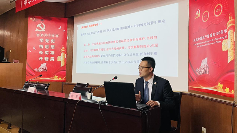 為深入貫徹習(xí)近平法治思想,加強(qiáng)法律法規(guī)知識(shí)學(xué)習(xí),進(jìn)一步提升公司黨員干部的法治思維和經(jīng)營(yíng)管理水平,確保依法經(jīng)營(yíng)、依法治企,根據(jù)年度黨建工作計(jì)劃,4月16日上午,公司黨委舉辦《民法典》專題輔導(dǎo)講座,邀請(qǐng)河南國(guó)銀律師事務(wù)所專職律師管歌講授“民法典重要規(guī)則變化解讀”。公司黨委書(shū)記安杰主持講座,公司黨委委員、各黨支部書(shū)記及經(jīng)營(yíng)管理人員,以及國(guó)銀黨員律師團(tuán)隊(duì)60余人參加活動(dòng)。
