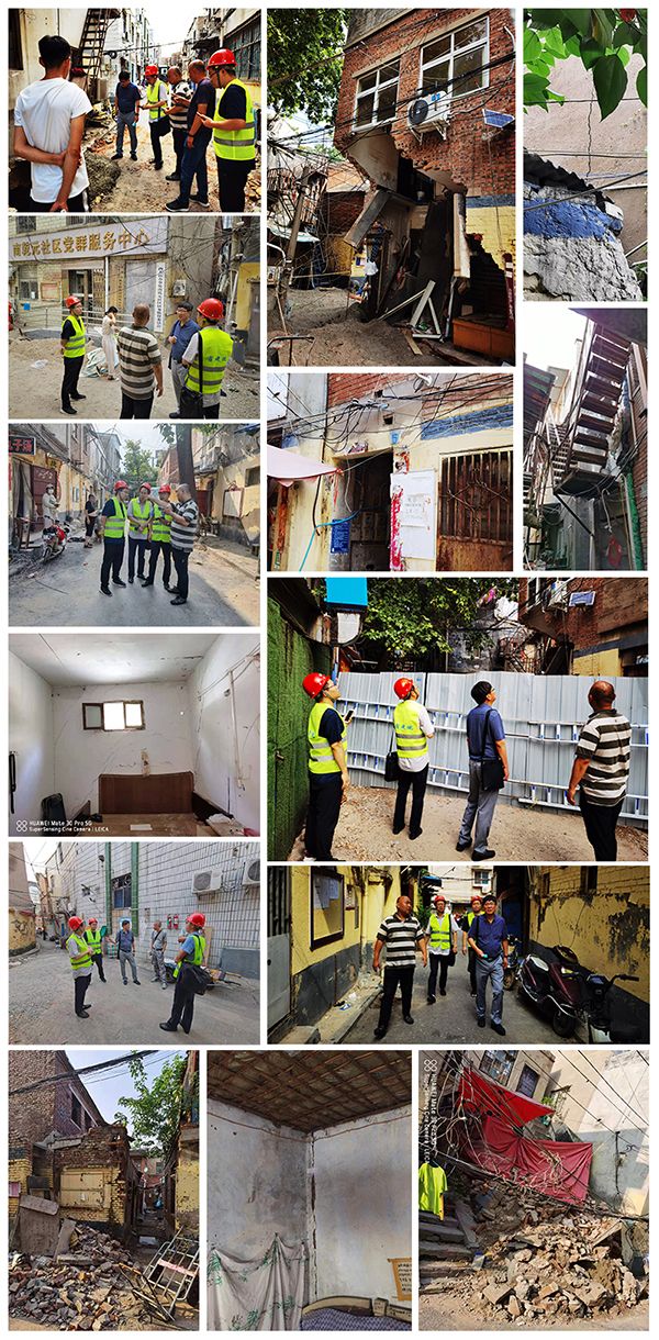 7月29日,河南省住房和城鄉(xiāng)建設廳發(fā)出關于組建“萬人技術服務團”支援開展受災房屋建筑和市政設施安全隱患排查評估工作的通知后,各級住房建設主管部門迅速行動。根據(jù)鄭州市管城區(qū)城管局的需求,29日下午,省住建廳迅速組織并領帶兩個專業(yè)技術團隊赴管城區(qū)南乾元社區(qū)、管城區(qū)中醫(yī)院進行房屋安全評估。其中由公司副總工程師谷文科、高級工程師郭松旭和勘測公司總工何德洪組成的河南省建筑設計研究院有限公司技術服務團隊,在省住建廳城市與建筑設計處常慶生處長的帶領下,對南乾元社區(qū)前、后阜民里街區(qū)座落于廢棄人防工程上的受損嚴重的20多戶房屋進行了入戶排查,并對已經(jīng)發(fā)生地面塌陷、房屋坍塌的12處23間民房實地查看,在本次排查中新發(fā)現(xiàn)的前阜民里44號房屋北墻下沉嚴重,墻體有貫穿裂縫,53號房屋樓梯位置下沉嚴重,房門無法打開,后阜民里69號房屋南窗戶頂部墻體砂漿脫落嚴重,墻體整體下沉,窗戶被壓變形嚴重等3處存在的嚴重安全隱患,提出了緊急處置意見。