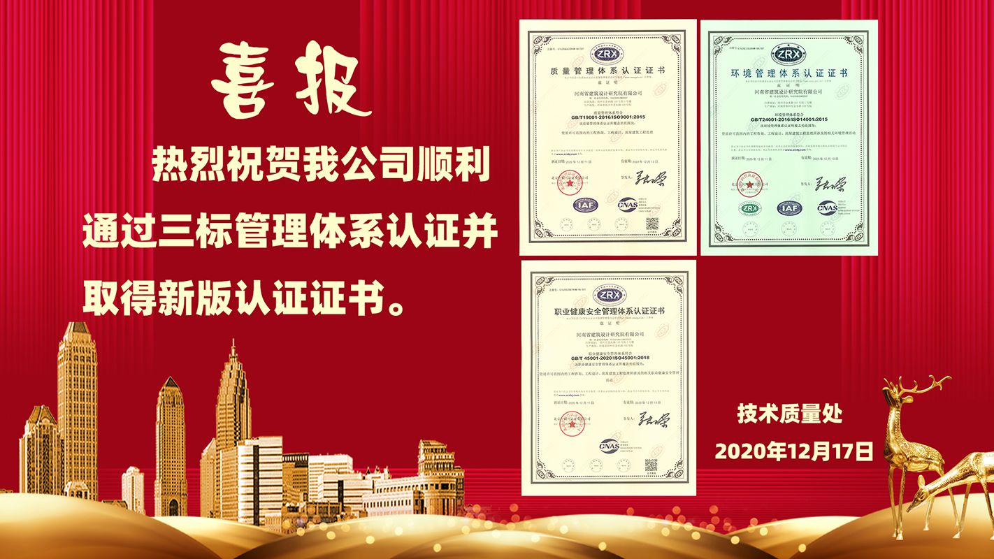 熱烈祝賀我公司順利通過(guò)三標(biāo)管理體系認(rèn)證并取得新版認(rèn)證證書(shū)