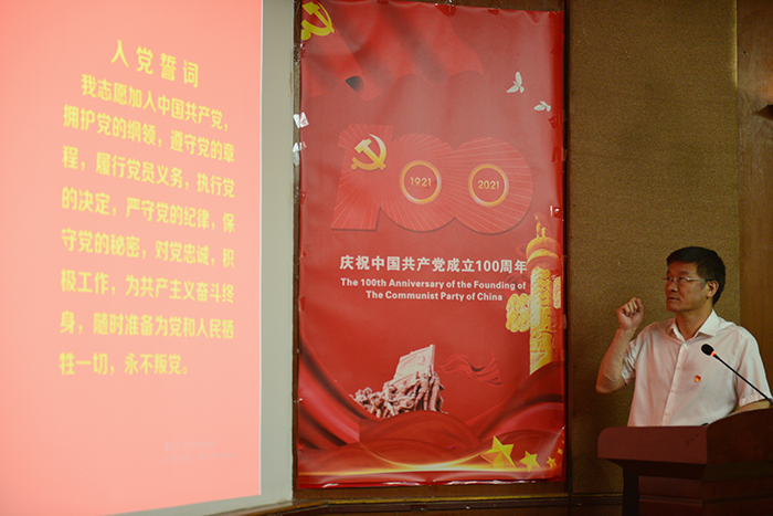 在莊嚴(yán)雄壯的《紅旗頌》樂曲中,黨委成員為老黨員佩戴上“光榮在黨50年”紀(jì)念章,并一一獻(xiàn)上鮮花,全體與會(huì)人員熱烈鼓掌,和老黨員們共慶這意義非凡的時(shí)刻。