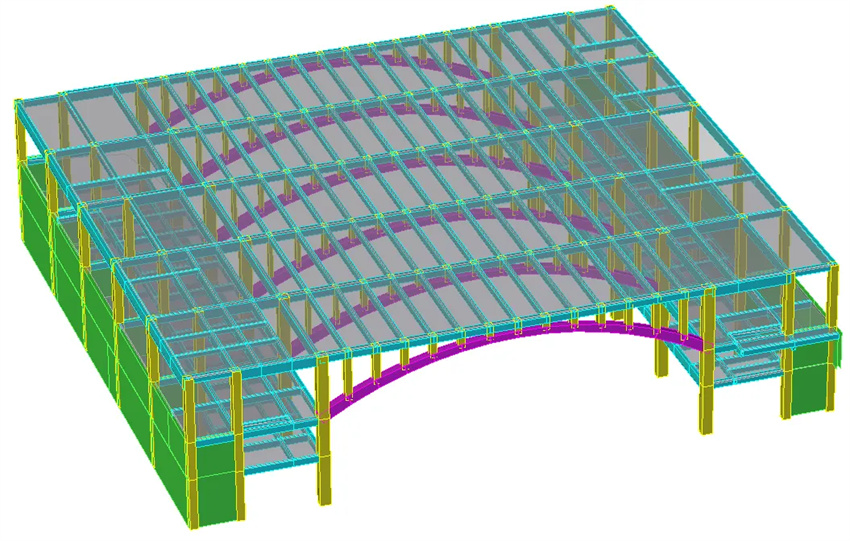 本項(xiàng)目是一個(gè)典型的兩層大跨案例,該工程實(shí)踐為多層大跨結(jié)構(gòu)提供了一種解決方案。