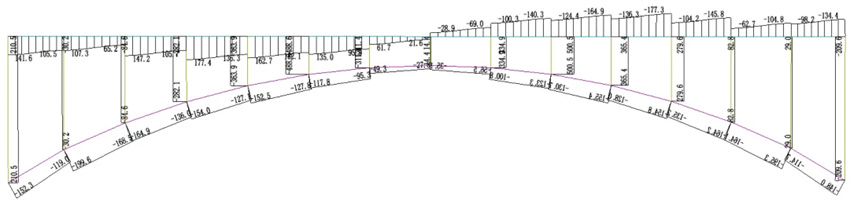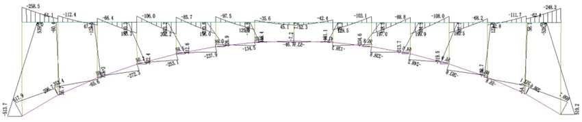 典型榀空腹拱架梁彎矩圖