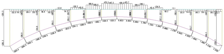典型榀空腹拱架梁軸力圖